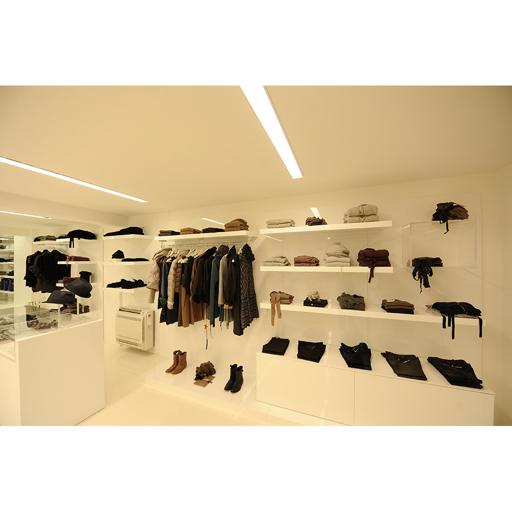 Lo studio dell’illuminazione infine valorizza gli spazi ed esalta i capi in vendita.